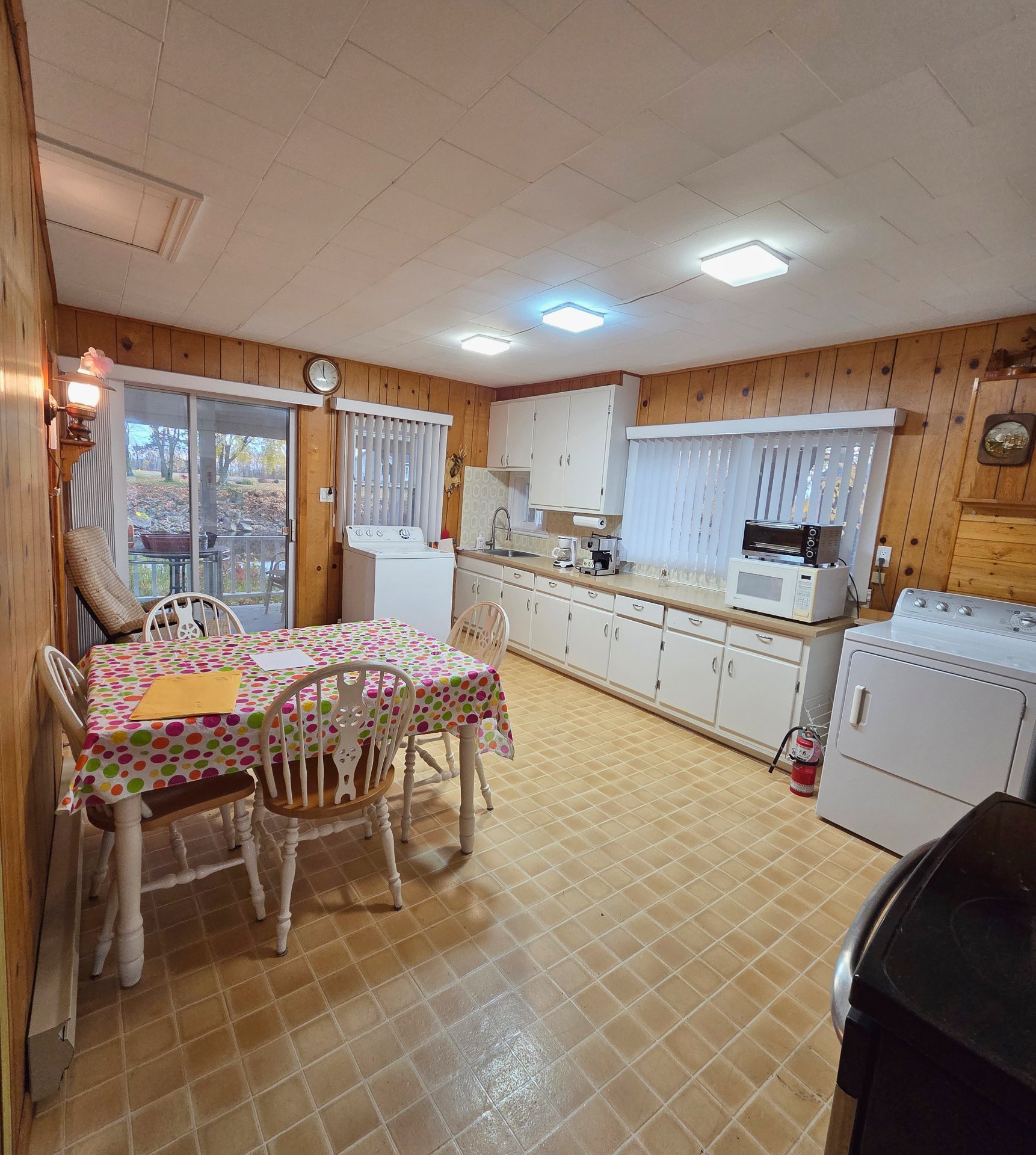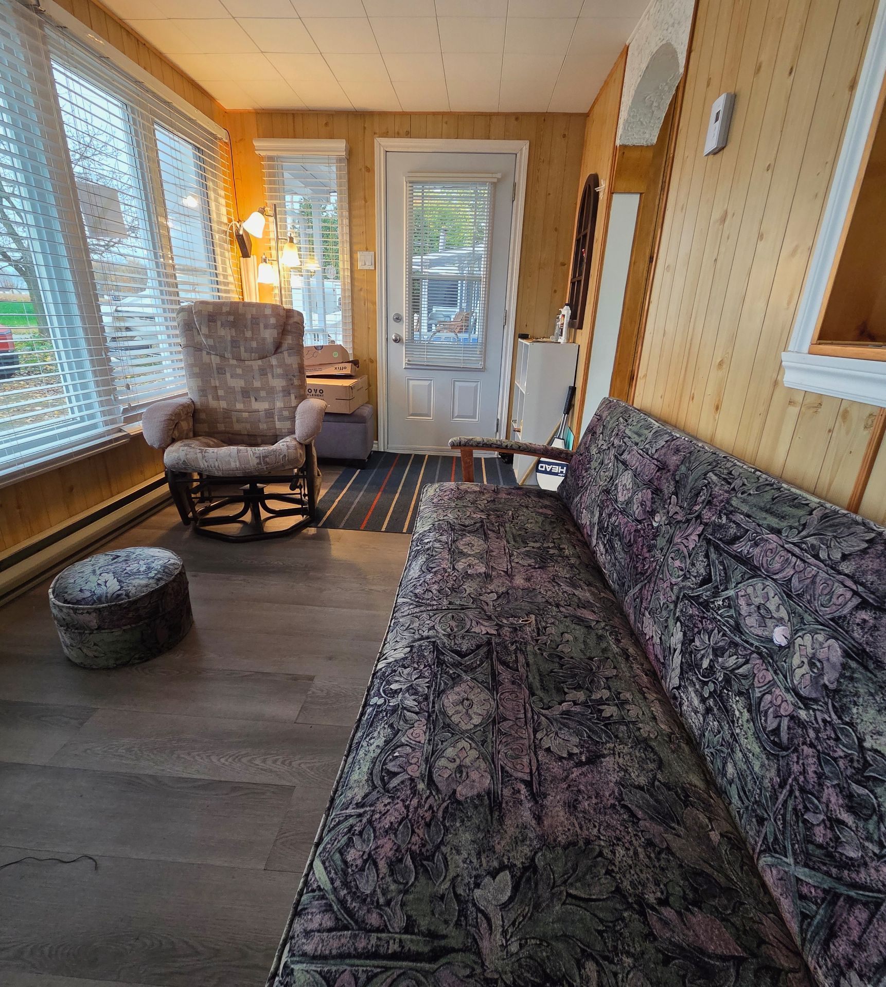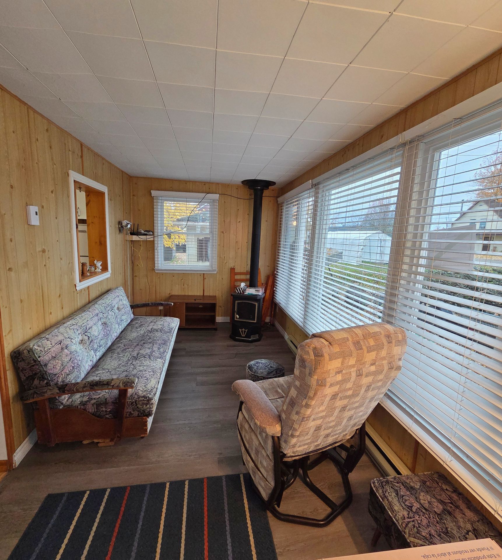 Inclus : tous les meubles qui sont à l'intérieur de la propriété, cuisinière, réfrigérateur, laveuse, sécheuse, stores, luminaires, poêle au mazout, les effets présents sur place lors de l'occupation, donnés tels quels.